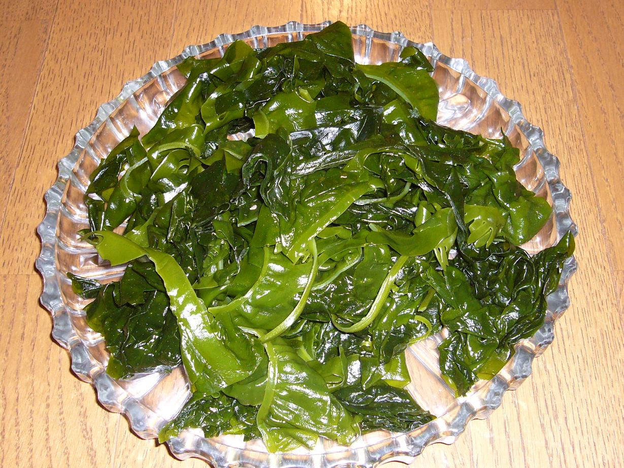 週末、Mミが取りたて新鮮わかめ、野菜、釜揚げしらすを持ってきてくれました(^o^)/