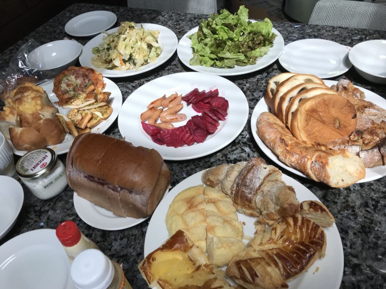 朝食は昨日買ったパンと地元野菜